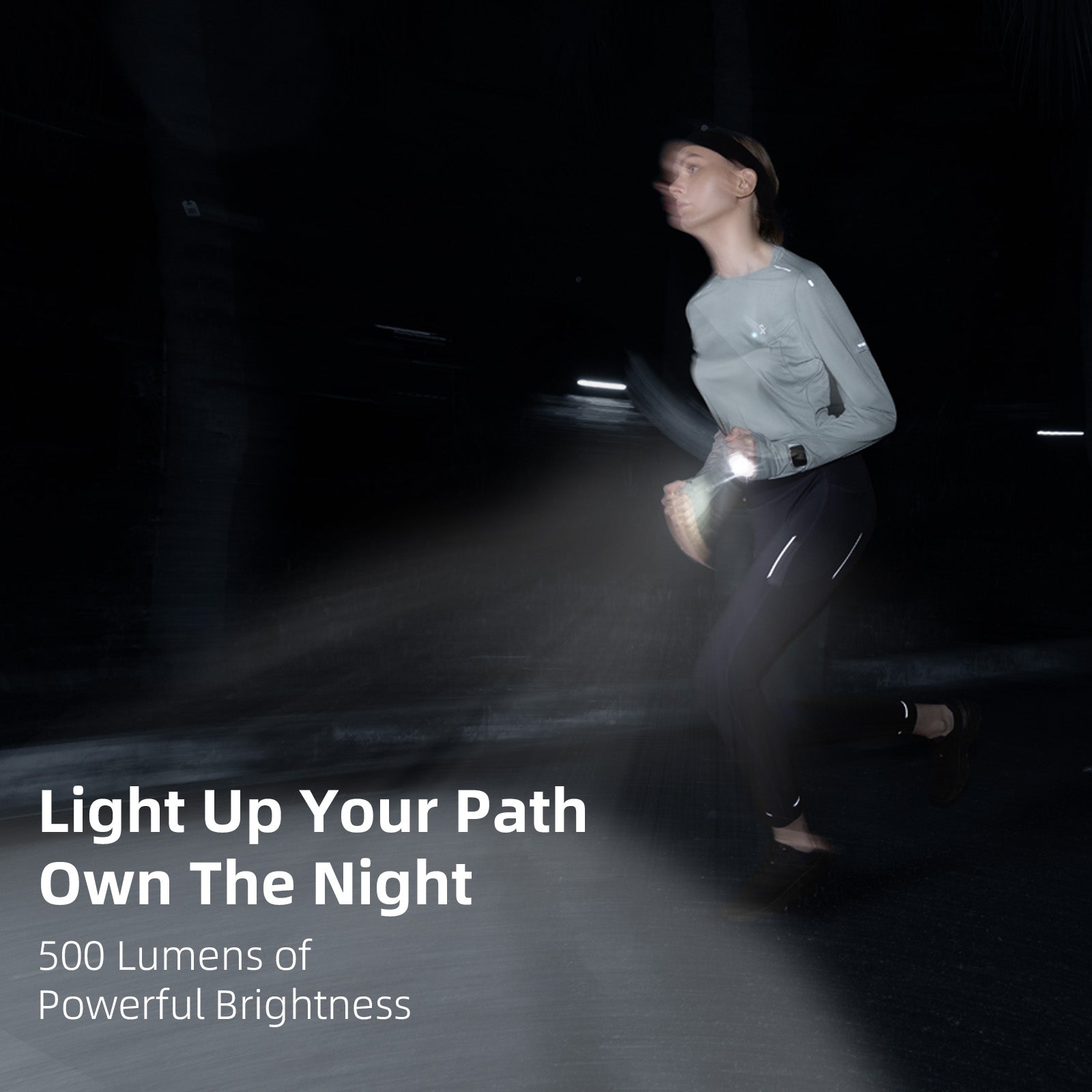 Only 44g, yet powerful with 500 lumens. IPX5 waterproof, 90° adjustable beam, and multiple light modes — Azzix lights your way, rain or shine. Built for runners who refuse to stop.